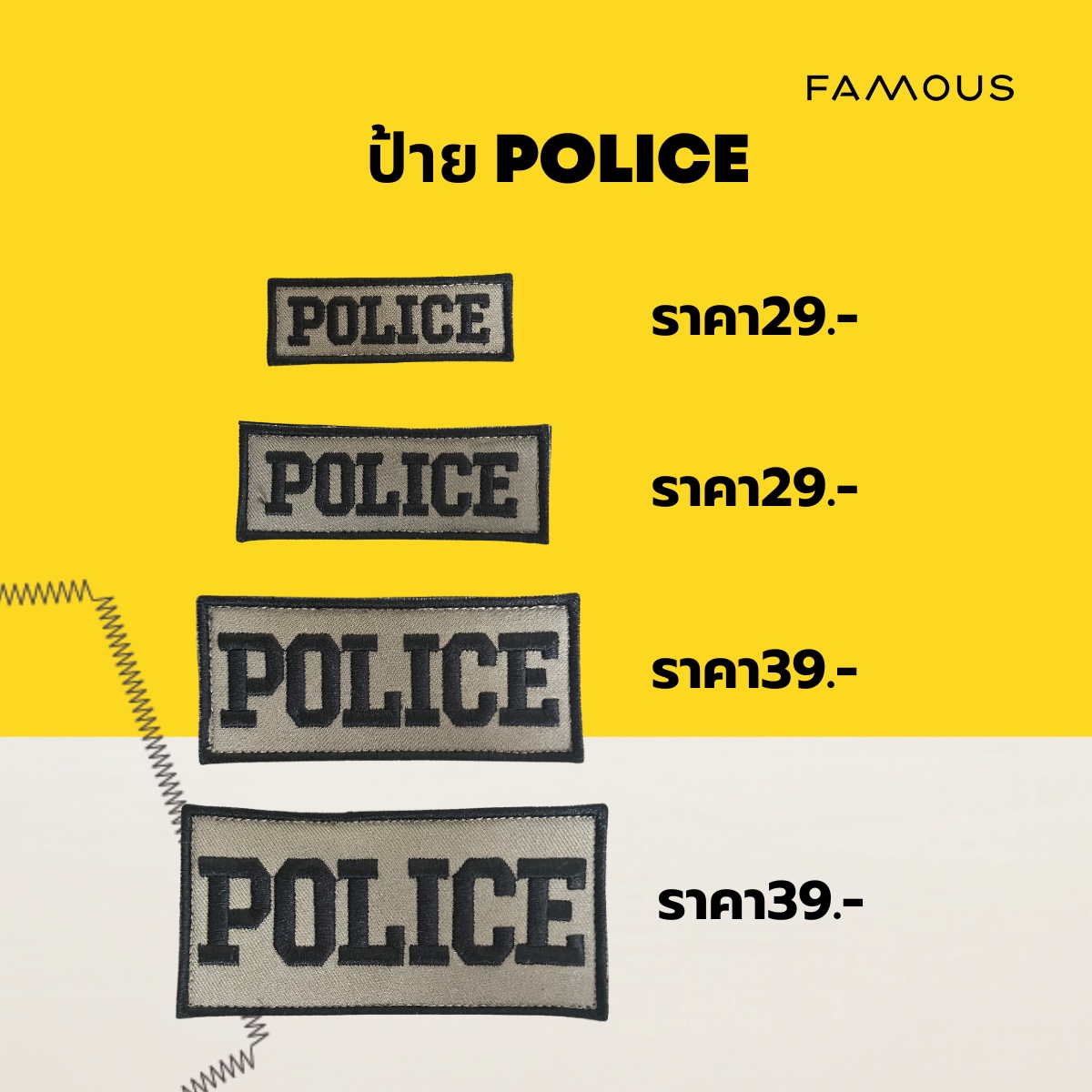 กรุ๊ปเลือด ผ้า สนว สายตรวจ ติดตีนตุ๊กแก แบรนด์FAMOUS