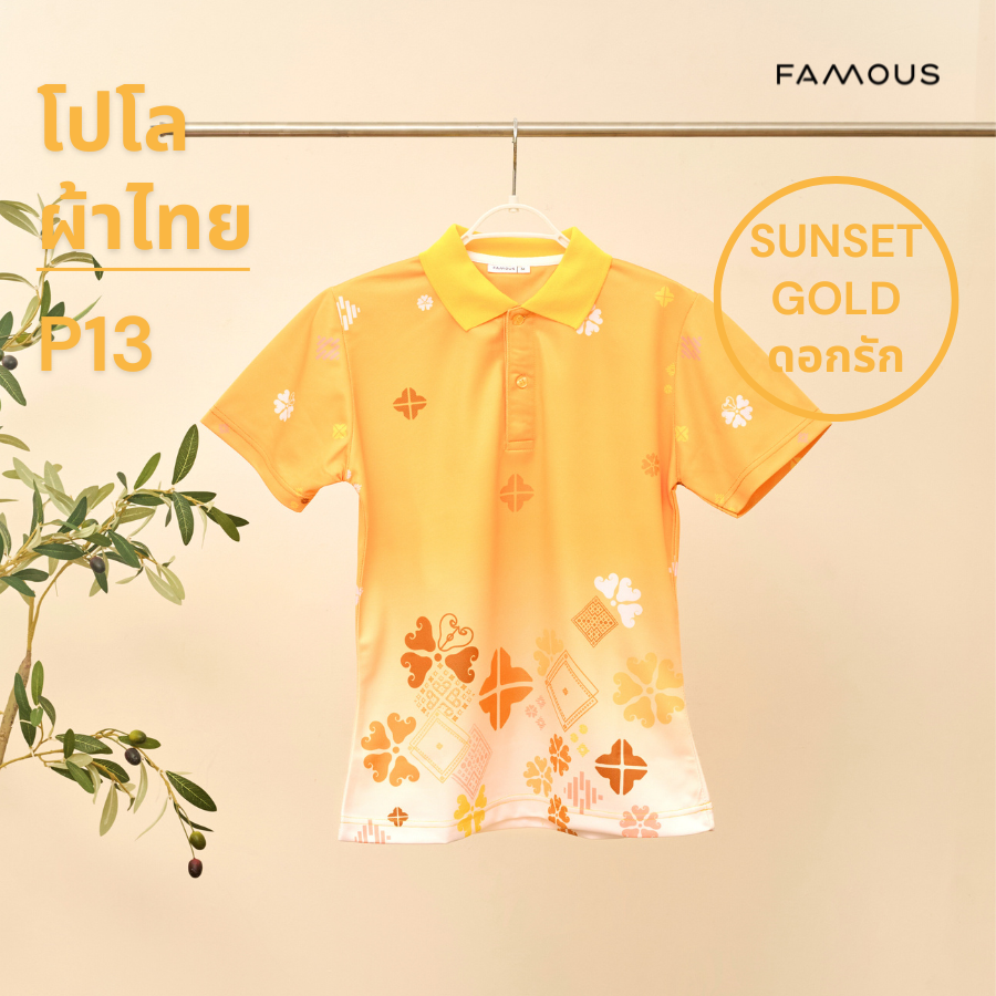 โปโลผ้าไทย ผ้าComfy drytex P13 Sunset gold ดอกรัก